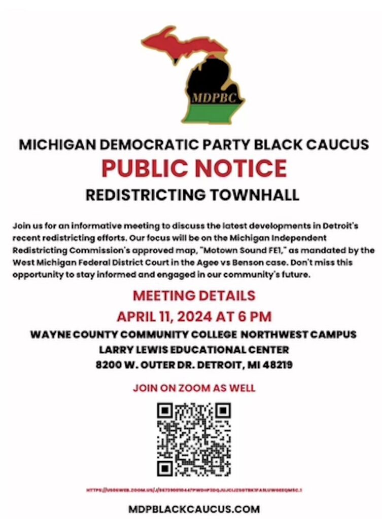 MDP Black Caucus Meeting: Redistricting Townhall | 4.11.24This entry was posted in Blog and tagged Community Meetings mdp black caucus michigan democratic party